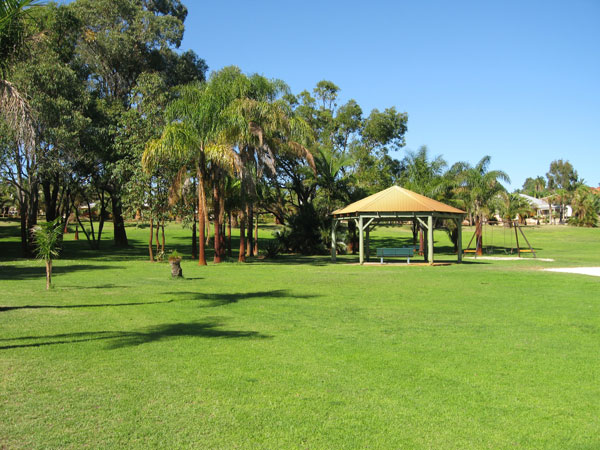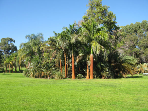 The Park covers approximately 5.2 ha (12.9 acres) and consists of dense plantings of palms and cycads, open grassed parkland and remnants of the original native vegetation of eucalypts, jarrah trees and grassland.